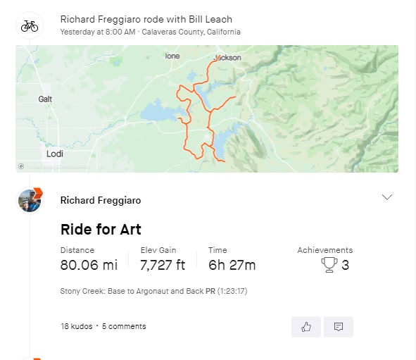 So yesterday, the Ride 4 Art ride in Calaveras County decided to buck the trend and actually put on a ride. With modifications of course. No post ride meal or entertainment. Remote check in. No wrist bands for rest stops. No raffle.