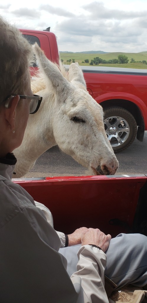 We went to the Black Hills National Park and Badlands National Park and Custer State Park, which so far retains its name, as South Dakota is much less ‘woke’ than many other parts of the country. All the countryside was very impressive, but Badlands is especially so. From Rapid City you drive through what seems like infinite miles of rolling grassland prairie, then suddenly you come up to this: