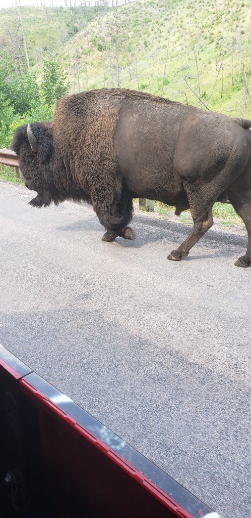 We went on an open air bison safari and saw lots of the massive beasts, along with deer and elk and big horn sheep and wild Modestines that loved to beg for carrots.
