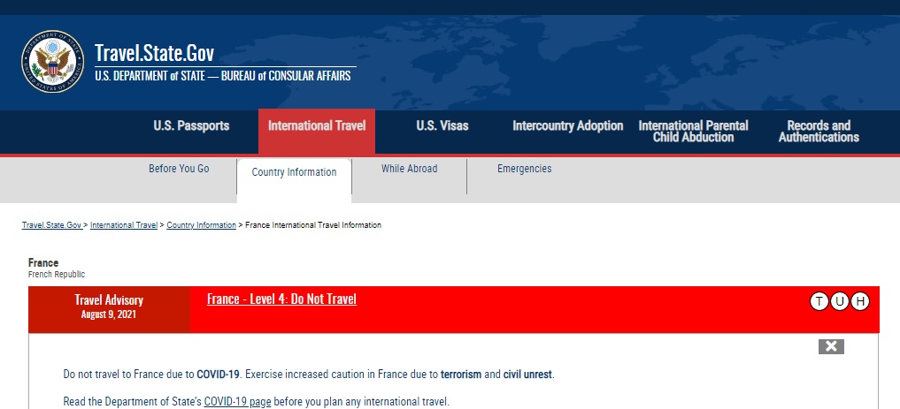 Speaking of the CDC, look what came they came out with about 5 days before I flew to Toulouse. And while I was in France the State Department chimed in too.