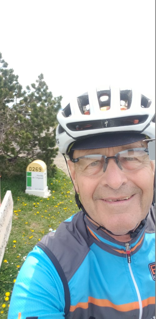 The borne at the summit, when all the climbing is finished, makes a really good photo opportunity, assuming you make it to the top without needing a sag. Here I am at a borne I’ve visited 4 times over the years: the highest point in the Cevennes.