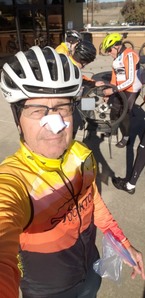 For now I need to keep putting Vaseline on the area and keep it bandaged out of doors. This makes cycling and wearing cycling glasses a little difficult and uncomfortable. Cycling in cold weather makes my nose run, but I have to be careful about blowing and wiping. And getting a cold or Covid now would be quite inconvenient.