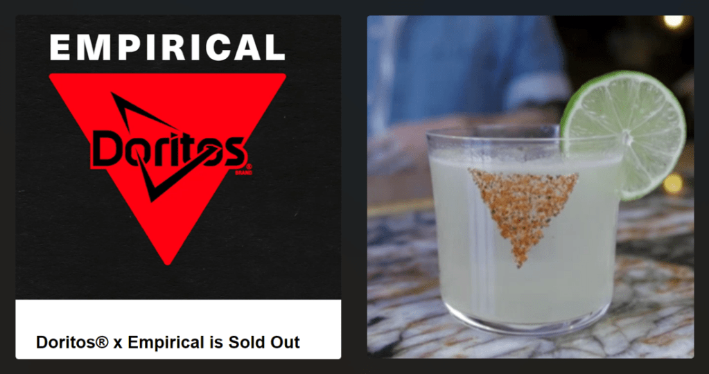 The Empirical x Doritos Nacho Cheese Vacuum Distilled Spirit is described as capturing “all the indulgent flavors of your favorite Nacho Cheese in liquid form,” according to Empirical’s website.