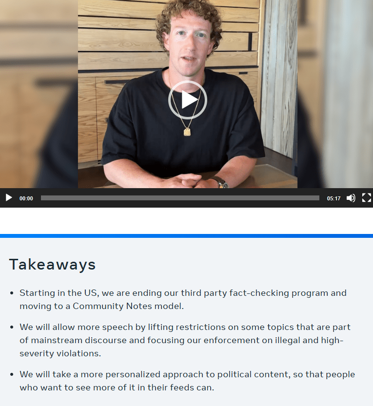 Then back in early January, he announced that FB was eliminating the fact checkers.