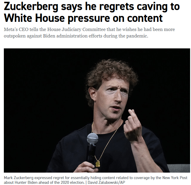 But the times they are a changing. Way back in August 2024, Zuckerberg offered some of us a mea culpa. Yes we were asked to censor by the Biden Administration, and yes we did. We’re sorry. It won’t happen again.