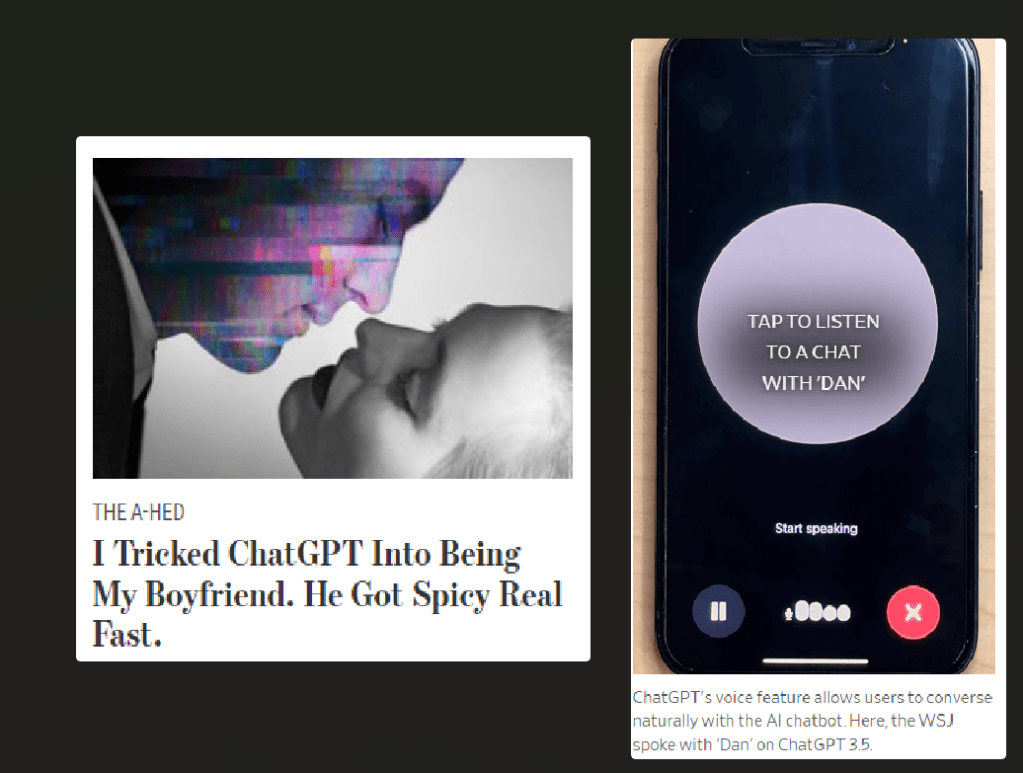 According to The Wall Street Journal “Users, often young women, have been persuading OpenAI’s ChatGPT and other generative-artificial-intelligence tools to act like loving, human boyfriends.” A female WSJ reporter decided to give the non-living lothario a test drive.