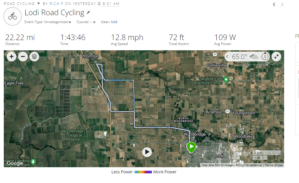 On Saturday a group of my cycling friends decided to stay flat and local with a 50+ mile loop from Lodi to Thornton and Galt. The weather was perfect, cool but not frigid, and sunny with almost no wind. Everyone was relaxed and enjoying the day and the company instead of hammering up some hills on the official Club ride.